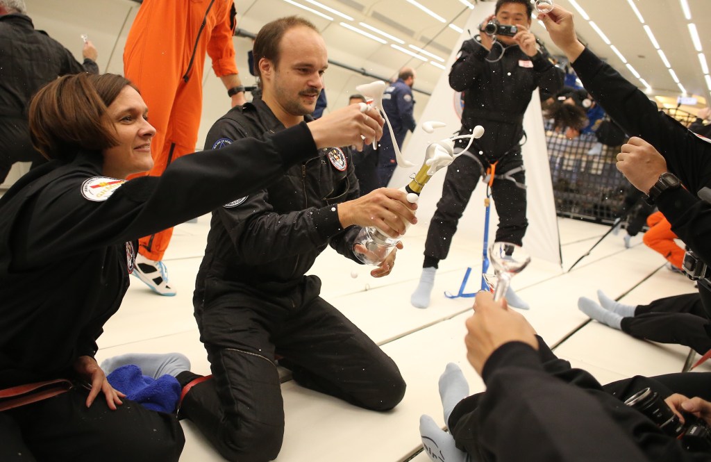 La Maison Mumm a mandaté SPADE, une agence de design fondée par Octave de Gaulle et spécialisée dans le design d’objets spatiaux, pour travailler sur les modèles développés par les deux experts scientifiques. Plusieurs prototypes ont été mis au point en conditions réelles lors de 3 vols paraboliques, entre avril 2017 et février 2018. Grâce à la Maison Mumm, les hypothèses théoriques ont bénéficié d’une application pratique qui a permis d’observer un certain nombre de phénomènes et réactions, analysées avec l’aide de Jean-François Clervoy.