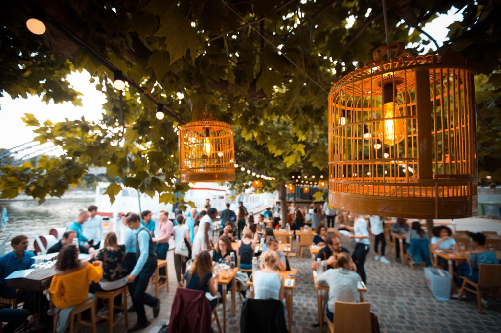 A deux pas de la Gare de Lyon, dissimulée sous les arbres en bord de Seine, la terrasse chaleureuse et furieusement festive de Filipe Aves prolonge l’été avec un nouveau concept de Food Court éthique de produits frais issus d’une agriculture raisonnée tenu par la maison Strogoff .