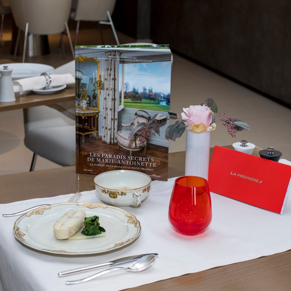 Les clients du salon La Première pourront prolonger l’expérience en parcourant l’ouvrage Cuisine de Roi à Versailles signé Alain Ducasse et des coéditions proposées par le château de Versailles dans la bibliothèque de livres d’arts du salon La Première.
