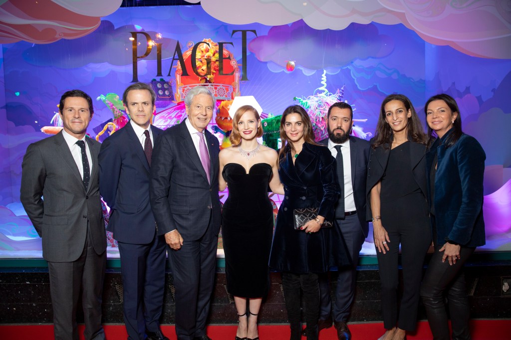 Les officiels des Galeries Lafayette et de la Maison Piaget ont inauguré ces vitrines en fin de journée : Philippe Houzé (Président du Directoire du Groupe Galeries Lafayette), Guillaume Houzé (Directeur Image et Communication), Alexandre Liot (Directeur des Galeries Lafayette Paris Haussmann), Olivier Bron (Directeur des Opérations Galeries Lafayette), Chabi Nouri (CEO de la Maison Piaget), Yacout El Glaoui (Directrice Marketing Piaget) ainsi qu’Anne-Charlotte Bellanger (Directrice générale Piaget France et UK). Jessica Chastain les a rejoint afin de dévoiler la vitrine consacrée à la marque.