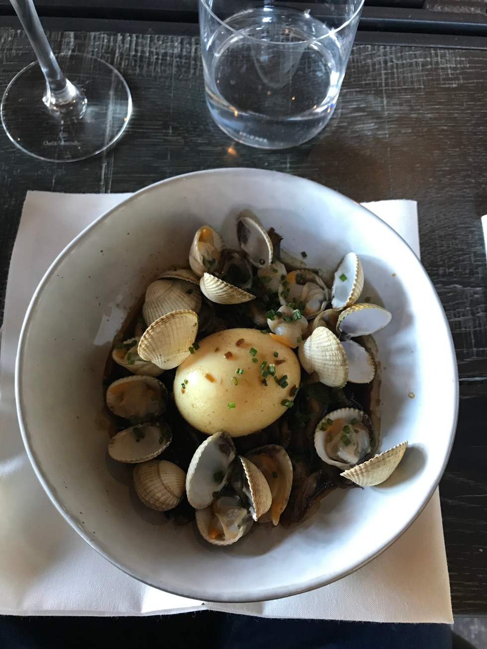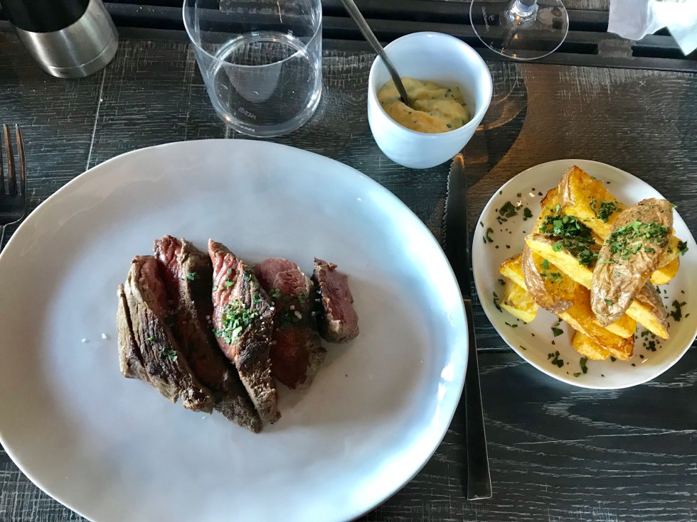 L’œuf bio mollet de la Ferme Galobio avec ses champignons de bois et coques est très réussi. La pièce de Rumsteak avec ses frites disposées malicieusement est à se damner.