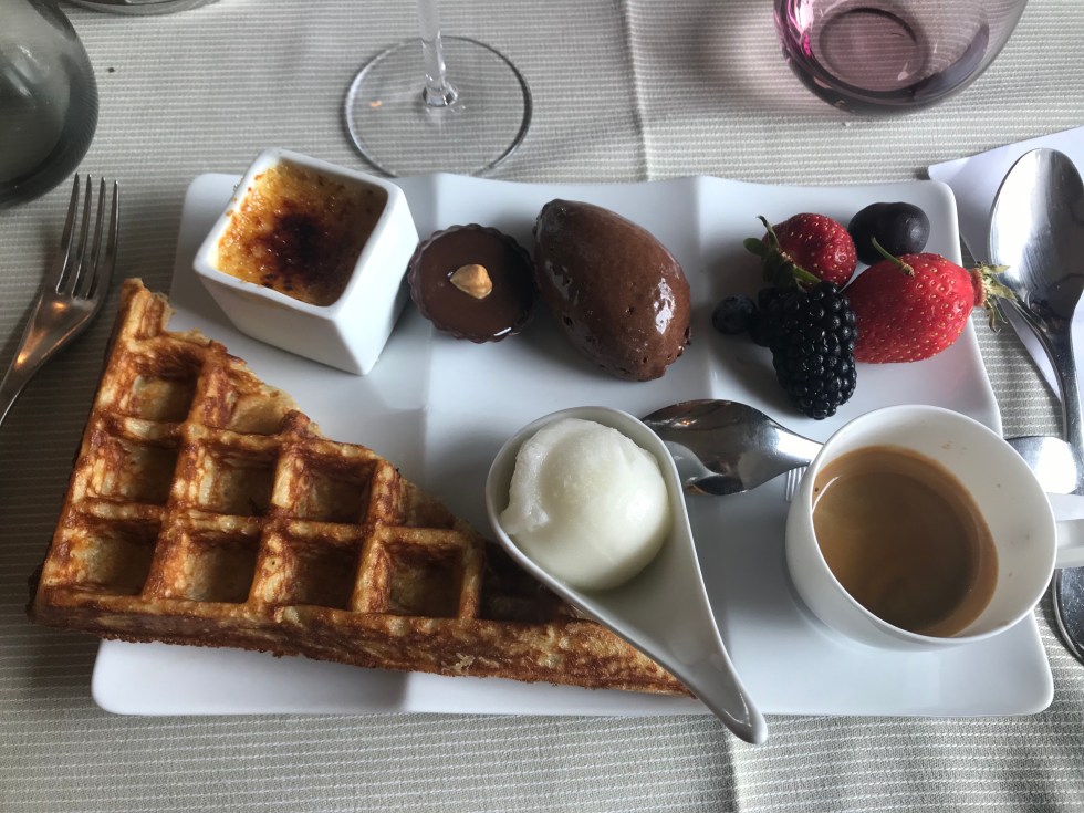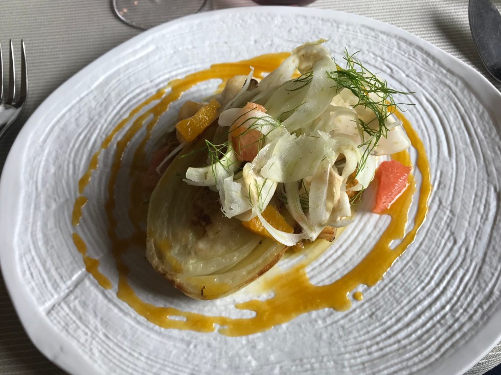 En entrée, les artichauts violets, roquette, parmigiano Reggiano et truffe d’été constituent par exemple, une belle entrée en matière. La cuisson du Cabillaud Doré est parfaite. Le mariage avec le fenouil fondant aux agrumes bien pensé.