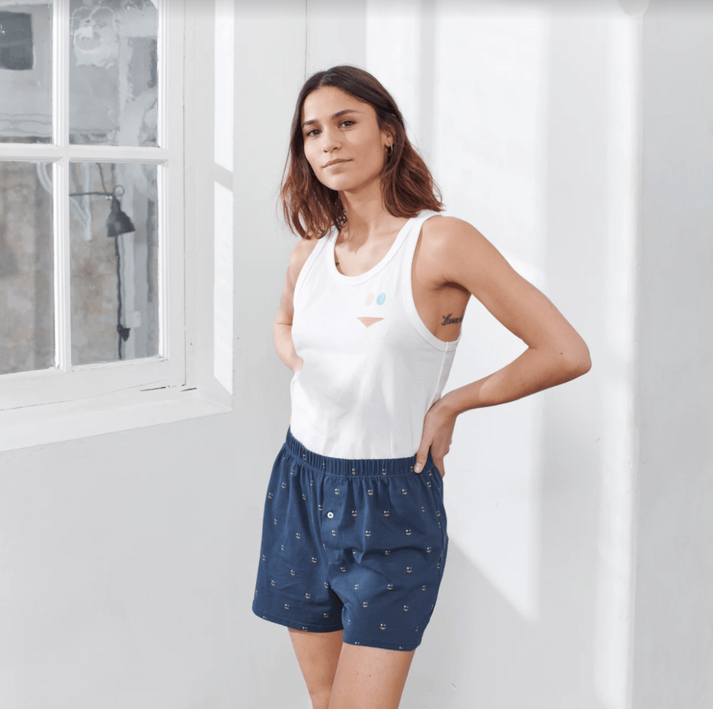 Ce tee-shirt, ce pull et cet ensemble de sous-vêtements invitent les amoureux.ses à se promener dans un univers à la fois minimaliste et souriant.