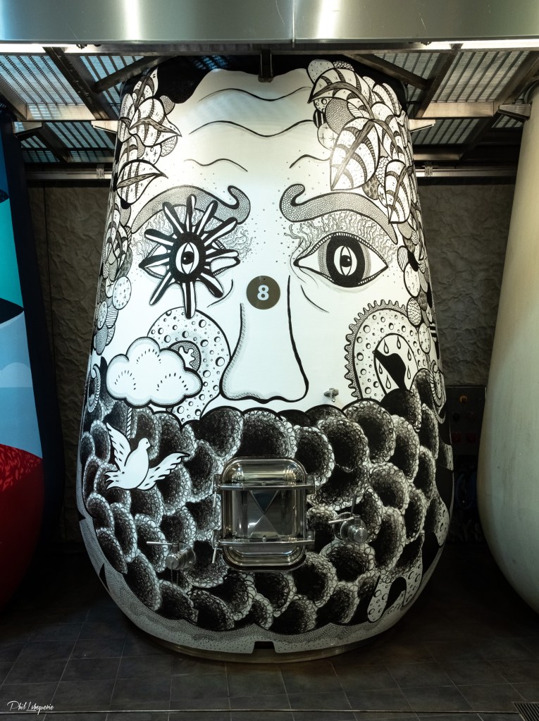 Ce visage de dieu « tatoué » est un clin d’oeil à l’art urbain, aux mangas japonais et à la bande dessinée de mon enfance. Des symboles parsèment cette cuve-totem, faisant allusion aux caprices des saisons, à la maturation du breuvage et aux qualités ésotériques du vin. Il est une fois encore question de magie et de spiritualité pour cette édition 2019. Bacchus au regard magnétique, extralucide, aura pour mission d’incarner le gardien du temple.
