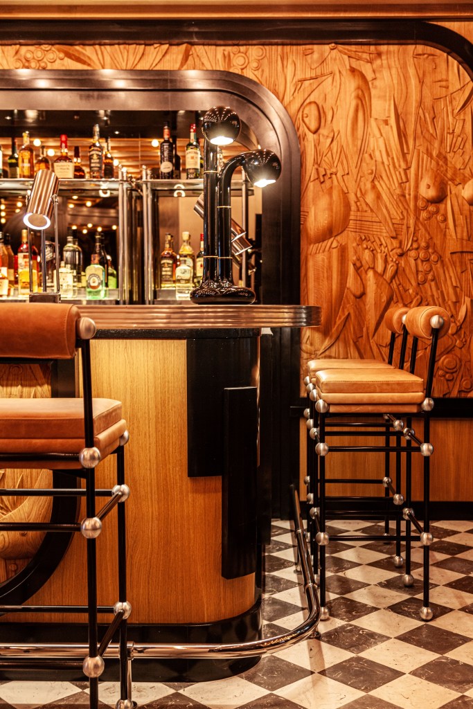 Au rez-de-chaussée, on est immédiatement charmé par le bar très glamour qui propose de délicieux cocktails. Mathias Giroud y fait des merveilles. Il est très difficile de choisir tant les breuvages nous font de l’œil.