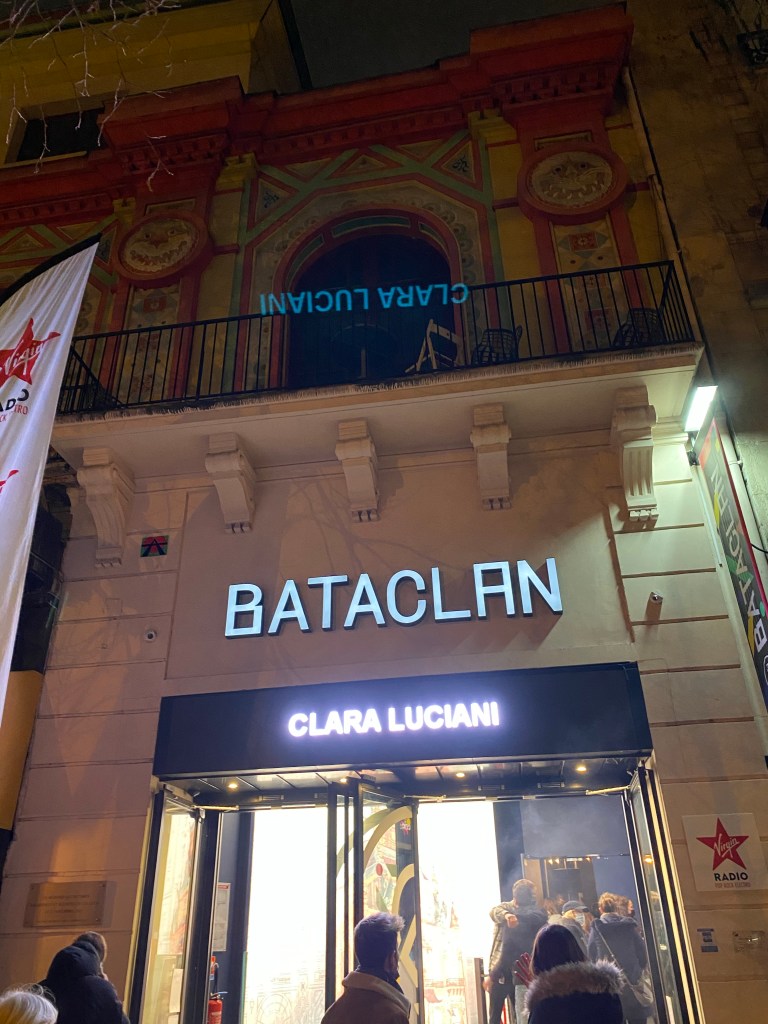 19h : à l’ouverture des portes de la salle du Bataclan, la foule est déjà nombreuse. Clara Luciani donne un concert qui était initialement prévu le 3 décembre mais décalé car certains musiciens étaient positifs au Covid. La salle se remplit peu à peu. La mezzanine affiche vite complet.