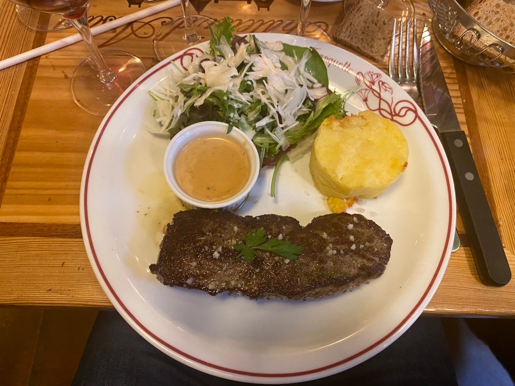 Le foie gras est très qualitatif en guise d’entrée. Mais on peut également opter pour le saucisson pistaché. Le boudin noir aux piments d’Espelette de Christian Parra est à tomber. Pour les viandards, le cœur de rumsteck vous ravira. Les desserts sont aussi réussis comme avec Fontainebleau à la crème de marron. Les amateurs de vins ne seront pas déçus. La carte est très riche avec de très nombreuses références.