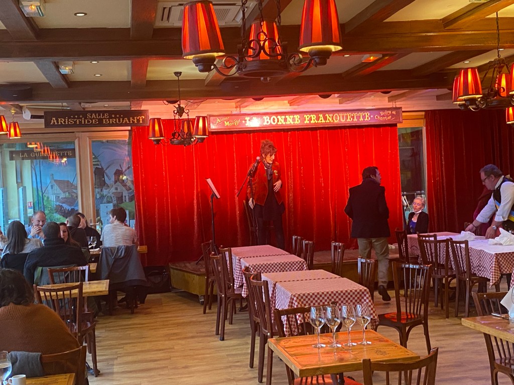 A noter aussi que la bonne franquette est aussi une adresse idéale pour organiser un banquet. Des chanteurs et chanteuses se produisent de temps en temps sur la petite scène. Le lieu a un charme fou. Lors de notre passage, une artiste se met à chanter avec beaucoup de sincérité, « La bohème » de Charles Aznavour.