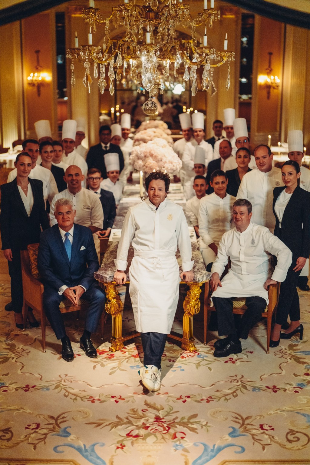 Jean Imbert est épaulé par Denis Courtiade et son équipe de salle, une brigade de cuisine dirigée par Jocelyn Herland et Mathieu Emeraud et la pâtisserie est orchestrée par Angelo Musa et Elisabeth Hot. « C’est une grande fierté d’être entouré d’une équipe si riche de talents et d’expériences, leur accueil et leur confiance depuis mon arrivée au Plaza Athénée m’ont beaucoup touché ».