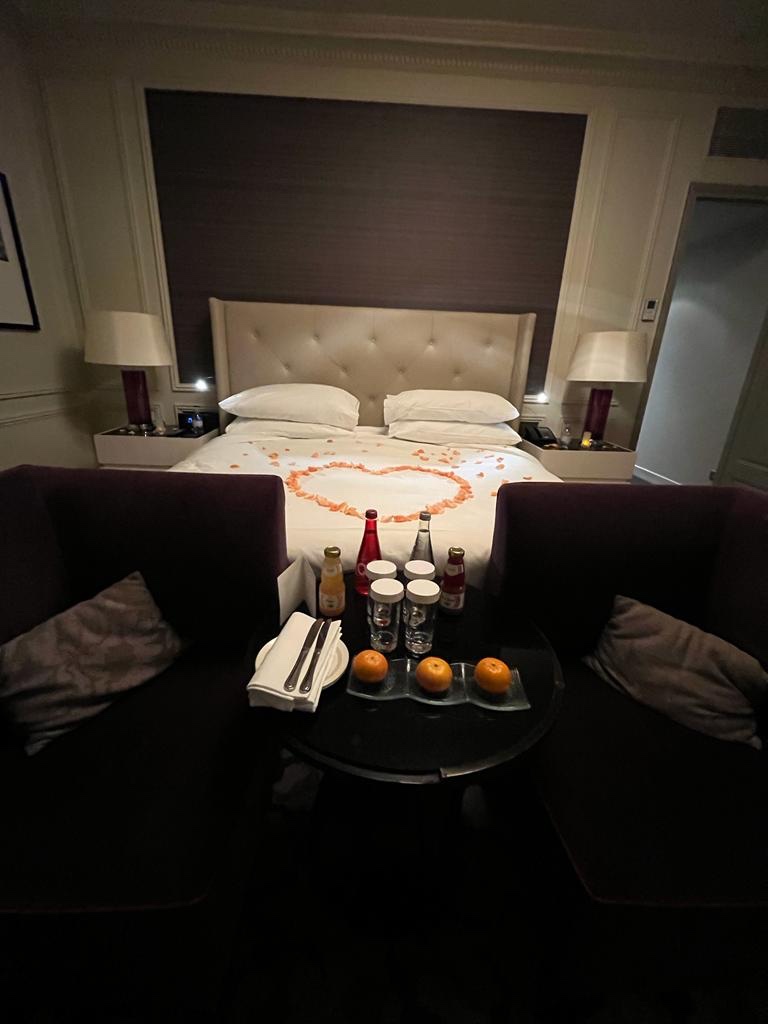 Côté chambres, la décoration est élégante et intimiste, celles-ci sont spacieuses et très confortables : lit king-size décoré avec des pétales de roses pour la fête des amoureux. La salle de bain, immense est parfaite avec sa belle baignoire. Les chambres avec une vue sur le parc de Versailles est un plus.