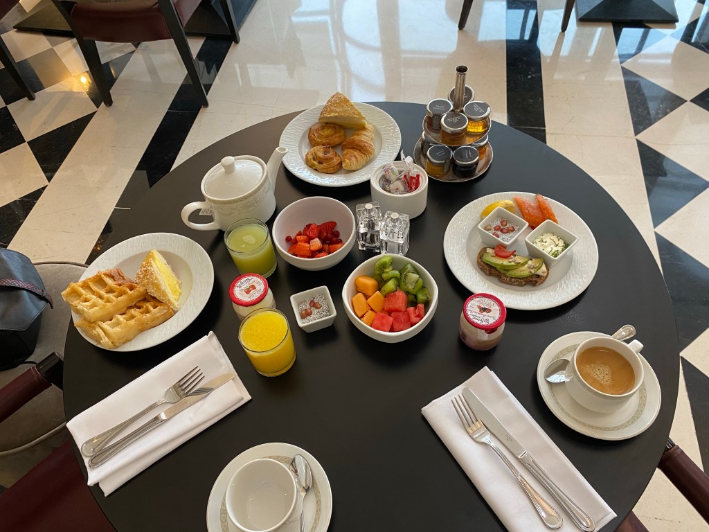 Il est très complet et le service est très pointu. Au programme Oeufs Bénédicte, assiette de fromages, salade de fruits, viennoiseries, café… De quoi bien démarrer la journée.