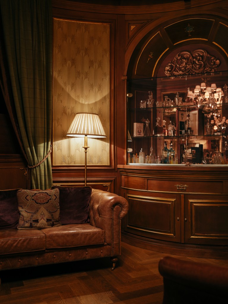 Des lustres en cristal datant des années 1920 sont suspendus au-dessus d’un beau bar en marbre noir et blanc qui présente une sélection de spiritueux uniques et d’antiquités vintage encore utilisées aujourd’hui. À l’arrière du bar, un miroir cache une boule disco spectaculaire qui brille de mille feux lors des soirées qui ont lieu les vendredis et les samedis. Les murs en tissu rouge caractéristiques du Bluesman Cocktail Bar et les confortables chaises en velours créent une atmosphère intime et confidentielle, parfaite pour profiter d’un dernier verre et d’un spectacle musical.