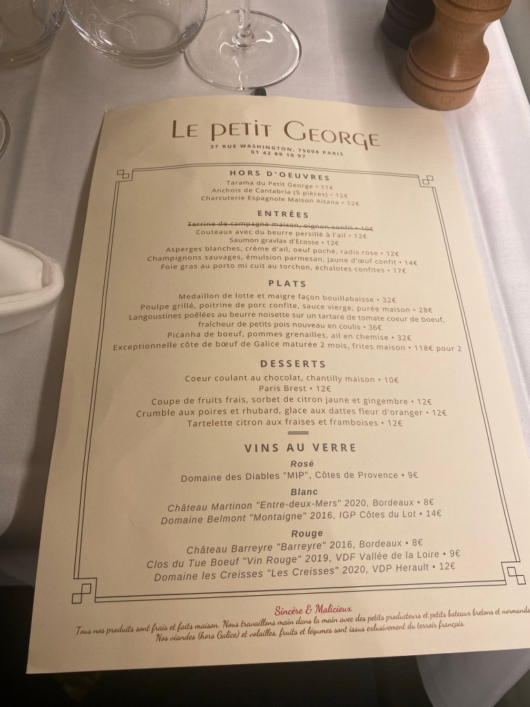 Situé rue de Washington, à quelques pas de la plus belle avenue du monde, le Petit George constitue une belle découverte. Cet établissement propose une cuisine traditionnelle qui fait mouche.
