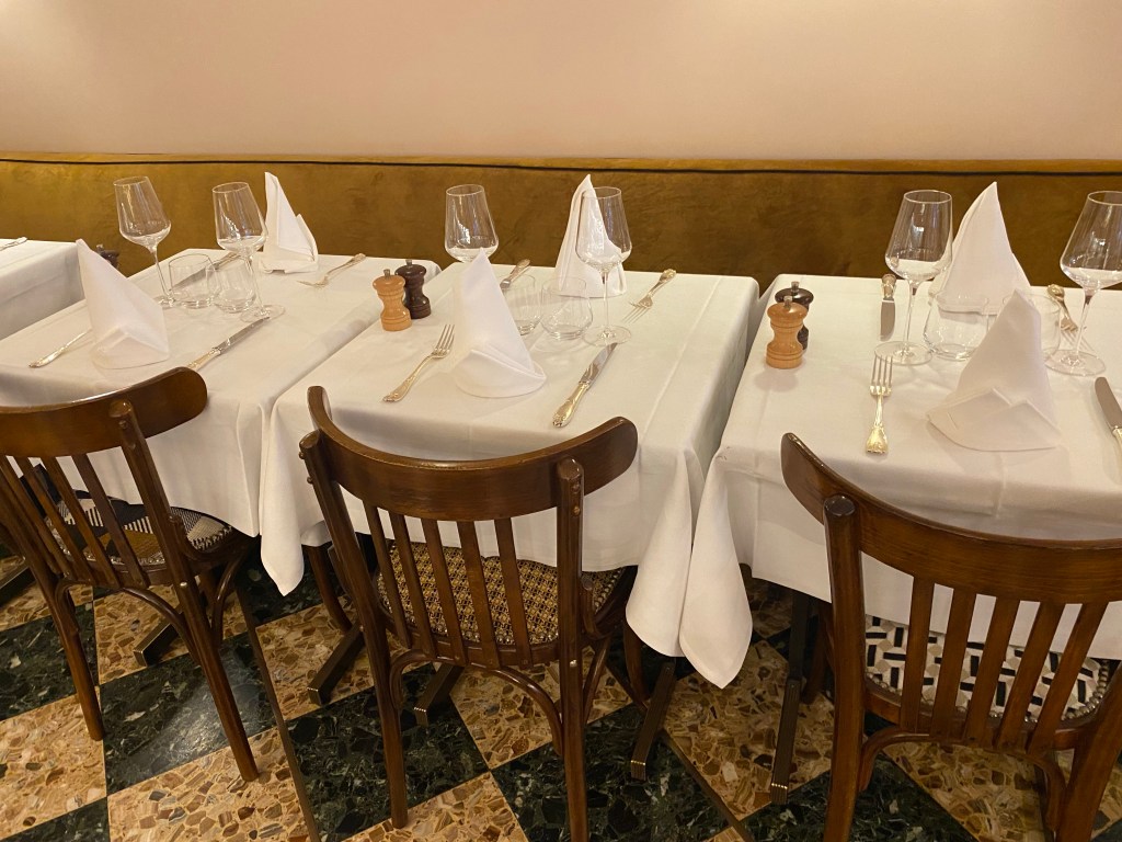 On se pose sur une table dressée avec une belle nappe blanche et des couverts en argent. Des petits signes qui ne trompent pas. La carte est courte et très alléchante.