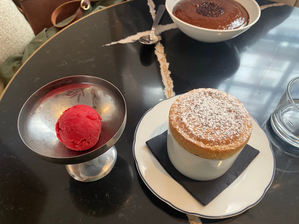 Des miroirs creusent les volumes et reflètent l’or liquide des toiles de laque qui ornent les murs. De longs cylindres d’albâtre diffusent une lumière chaude. Le jour de notre venue, le restaurant fait le plein et ai déjà devenu une adresse prisée des habitants qui quartier et des amateurs de bistronomie.