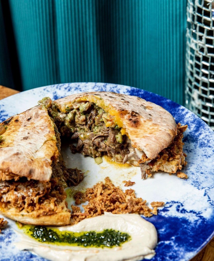 Parmi les plats, la généreuse pita : effiloché de bœuf, cheese vegan, oignon rings, tahini, tomates pimentées et poêlée de légumes. Ou encore l’assiette orientale : nikitouches, houmous de pistache, artichauts à la juive, chalda, falafels de fèves, butternuts à la marocaine, sésame et grenades.