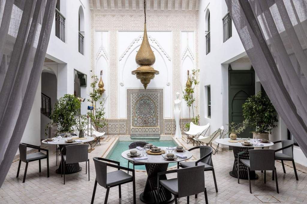 Au Riad Laz Mimoun, on prend ses marques en quelques heures et l’on se sent très vite comme à la maison. On peut décider de prendre le petit déjeuner dans le patio ou sur le rooftop. Justement, le rootop constitue l’un des atouts du Riad avec des transats qui permettent de se détendre dans un décor arboré. Nous sommes à deux pas de la Mamounia et de ses superbes jardins. Le plus grand calme règne. Le spot est parfait pour lire ou se détendre.