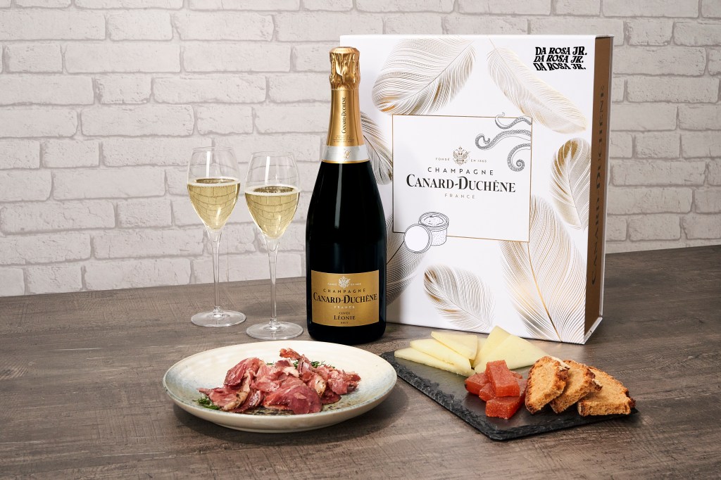 Ces deux protagonistes du (bon) goût se sont associés pour créer ce coffret apéritif aux saveurs hivernales. Les 4 accords gustatifs originaux qui le composent – manchego, poulpe de Galice, tarama à la truffe, pastrami de Wagyu – ont trouvé chacun leur place dans la dégustation de la cuvée Léonie afin qu’ils s’allient au mieux et révèlent les saveurs de chaque ingrédient et celles du vin, sans que l’un ne prenne le pas sur l’autre.