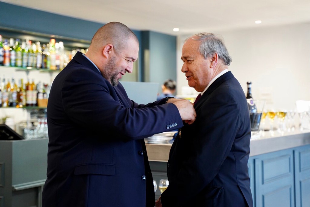Jean-Pierre Cointreau a reçu, ce jour, des mains de Guillaume Gomez, ambassadeur pour la gastronomie française, au restaurant d’application des Apprentis d’Auteuil (Paris 16ème), la médaille de l’ordre du Mérite agricole.
