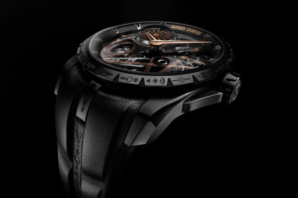 Après le lancement éblouissant de la Monotourbillon en 2021, voici la deuxième collaboration dédiée entre ces deux partenaires. Cette fois-ci, le tatoueur iconique revient dans l’espace le plus important de Roger Dubuis, la Manufacture, pour apporter sa touche subtile à l’Excalibur Monobalancier.