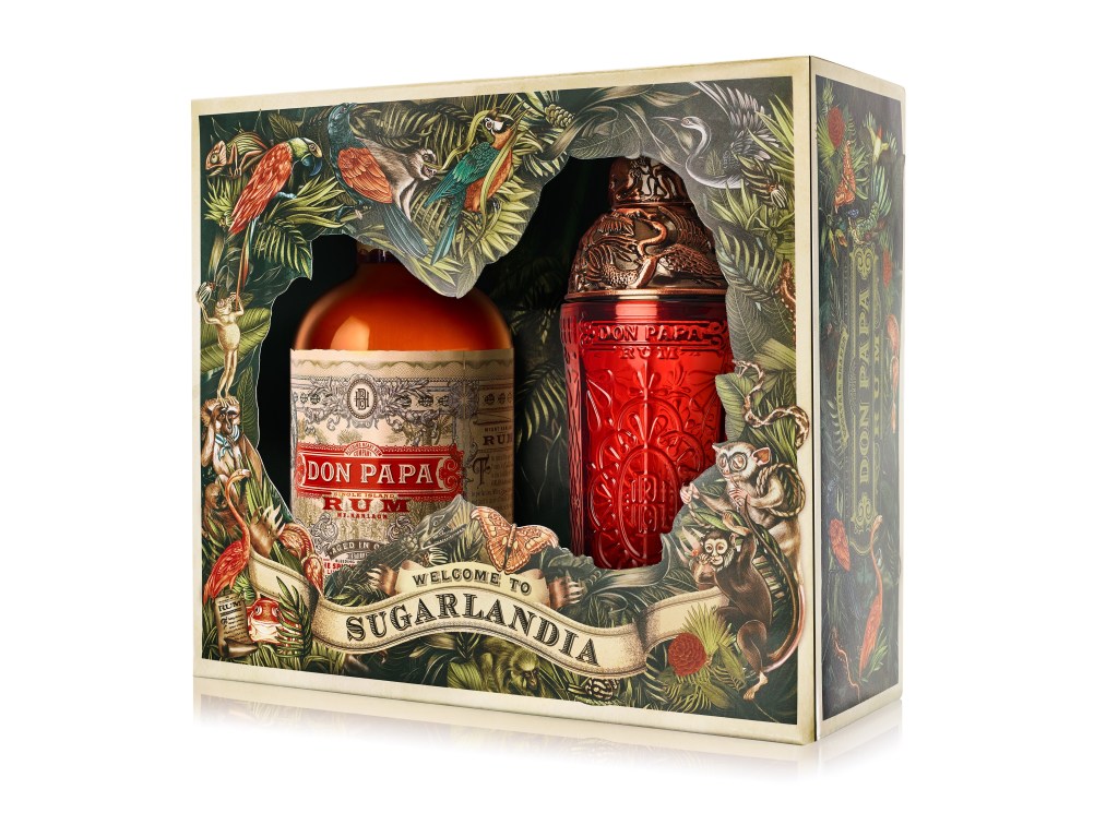 Ce coffret haut de gamme nous plonge dans un paysage luxuriant, fertile et coloré, peuplé de créatures mystiques, qui illustre la terre natale de Don Papa : les Philippines. Le shaker en verre et en métal qui accompagne cette édition limitée se pare d’une robe ambrée et lumineuse en hommage au célèbre Don Papa 7.