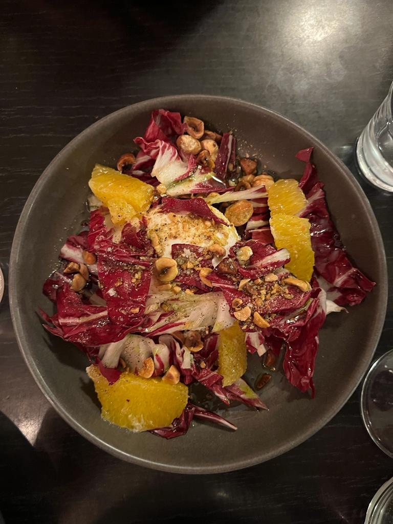 La Burrata, accompagnée de salade trévise, d’agrumes et de noisettes rôties (13€), offre une alliance de textures et de saveurs, créant une belle harmonie. Le poulpe mérite aussi le détour.