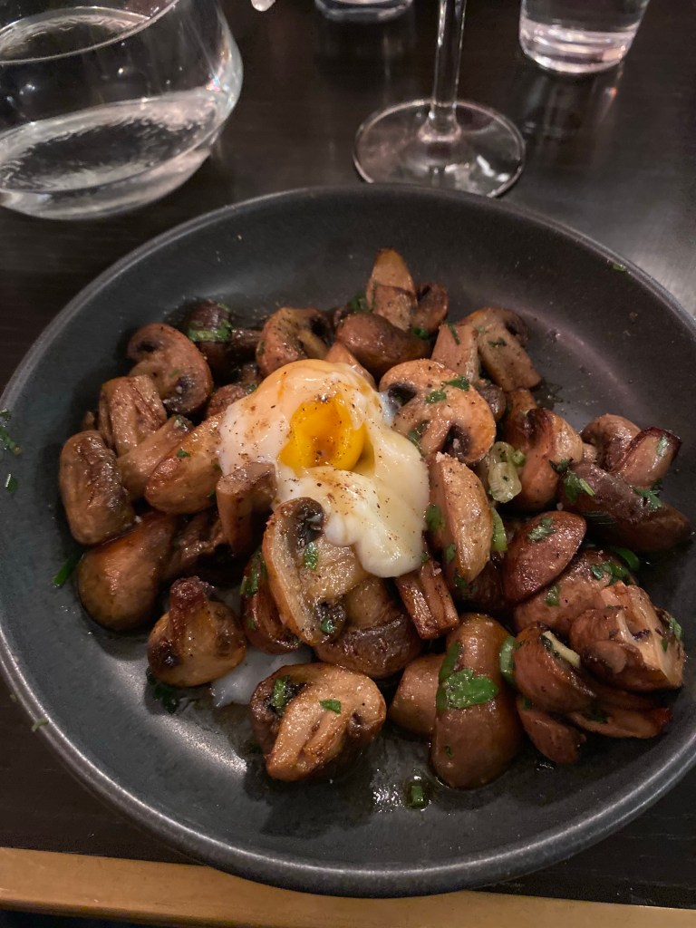 Qu’est-ce que ça donne dans l’assiette ? En entrée, le poêlée de champignons aux herbes et œuf confit (10€) a conquis mon palais de fervent amateur de champignons.