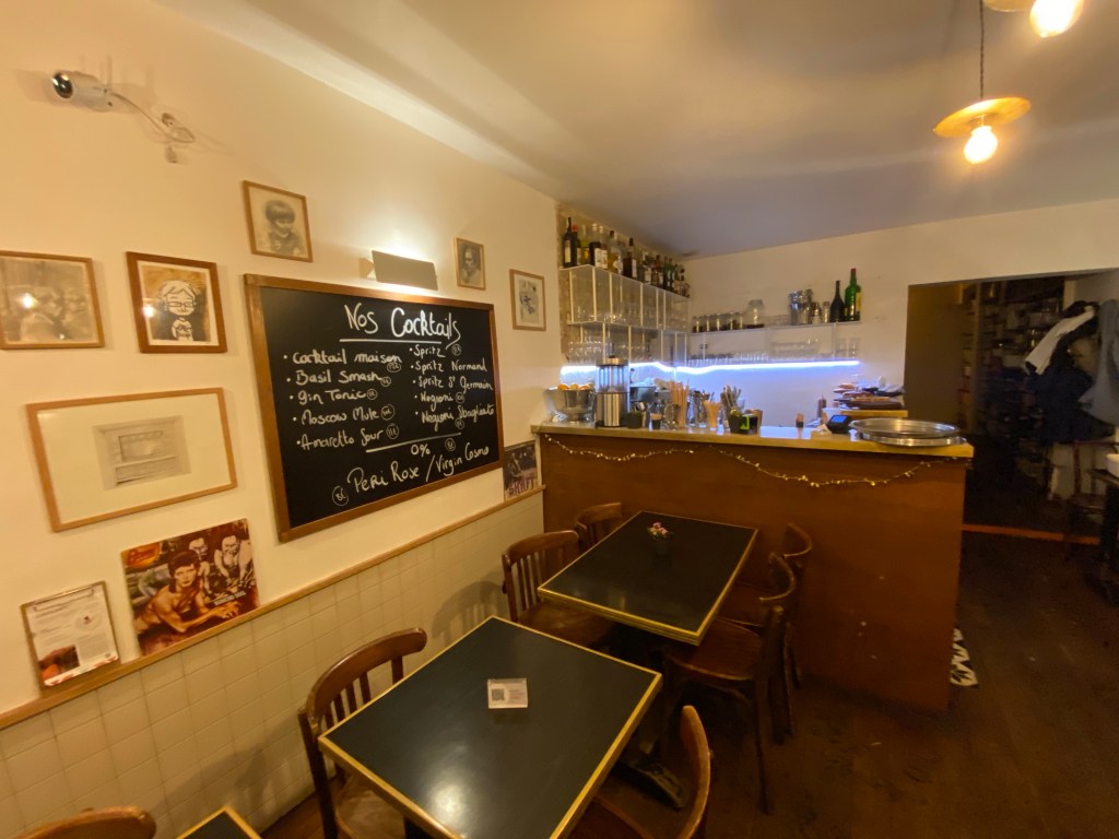 Cet ancien comédien qui a racheté l’établissement il y a une dizaine d’années en a fait un lieu hybride, inclassable. Un peu à son image. Le patron a mis beaucoup de lui dans ce restaurant. Il est intarissable sur les rencontres et les personnalités qui ont eu l’occasion d’y manger, comme Francois Hollande. La déco assez iconoclaste avec des pochettes de disque au mur est réussie.