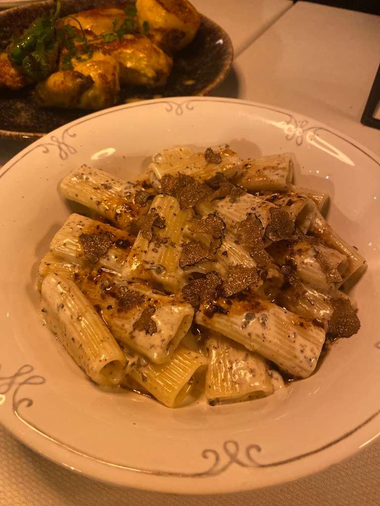 Évoquant les célèbres recettes italiennes et les repas authentiques en famille, où l’on parle fort et fredonne des airs connus, l’Italie devient unique dès que l’on capture cet esprit de famille, transformant chaque convive en Italien l’espace d’un instant. On déguste des rigatonis sublimées par la délicatesse de la truffe, agrémentés d’un jus de veau délicieusement truffé.