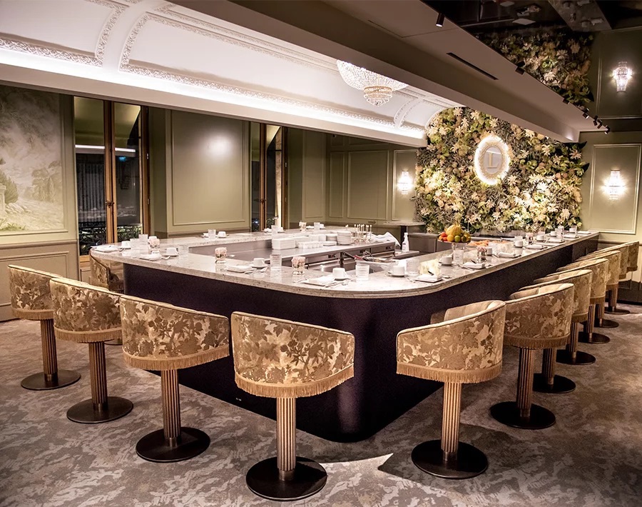 L’étage réserve des salons historiques pour des déjeuners d’affaires ou des rendez-vous privés, préservant l’intimité chère aux clients. Le bar à desserts, majestueux et habillé de marbre, offre un spectacle gourmand unique.