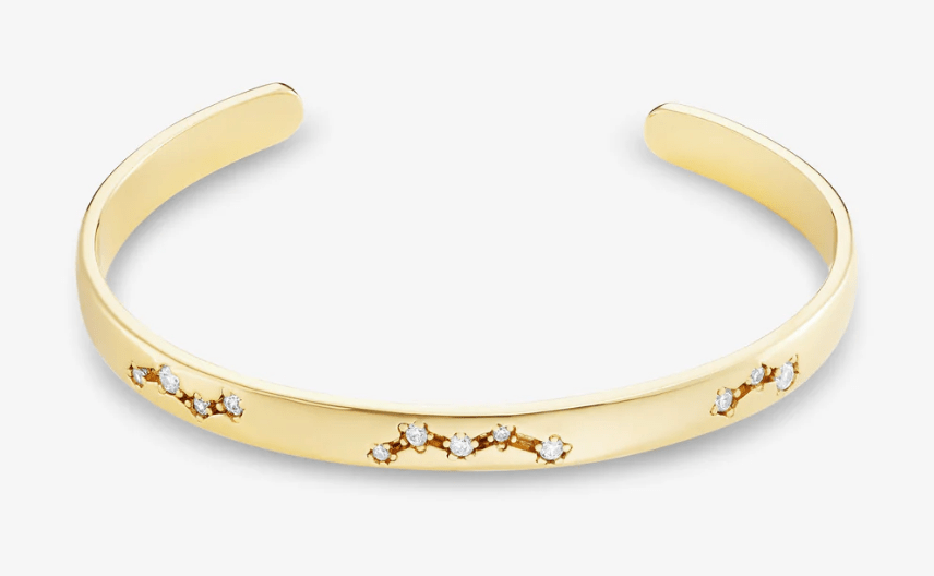 Découvrez ce superbe jonc orné de petites pierres blanches, représentant plusieurs constellations. Avec une taille de 16cm + 4cm, il s’adapte parfaitement à votre poignet. Fabriqué en laiton doré en Or 18k, ce jonc est non seulement élégant mais aussi résistant à l’eau. Il idéal pour ceux qui aiment se baigner. Assurez-vous simplement de rincer vos bijoux à l’eau claire après chaque baignade et de les essuyer pour les garder étincelants. Avec ce jonc, portez un morceau de ciel étoilé partout où vous allez.