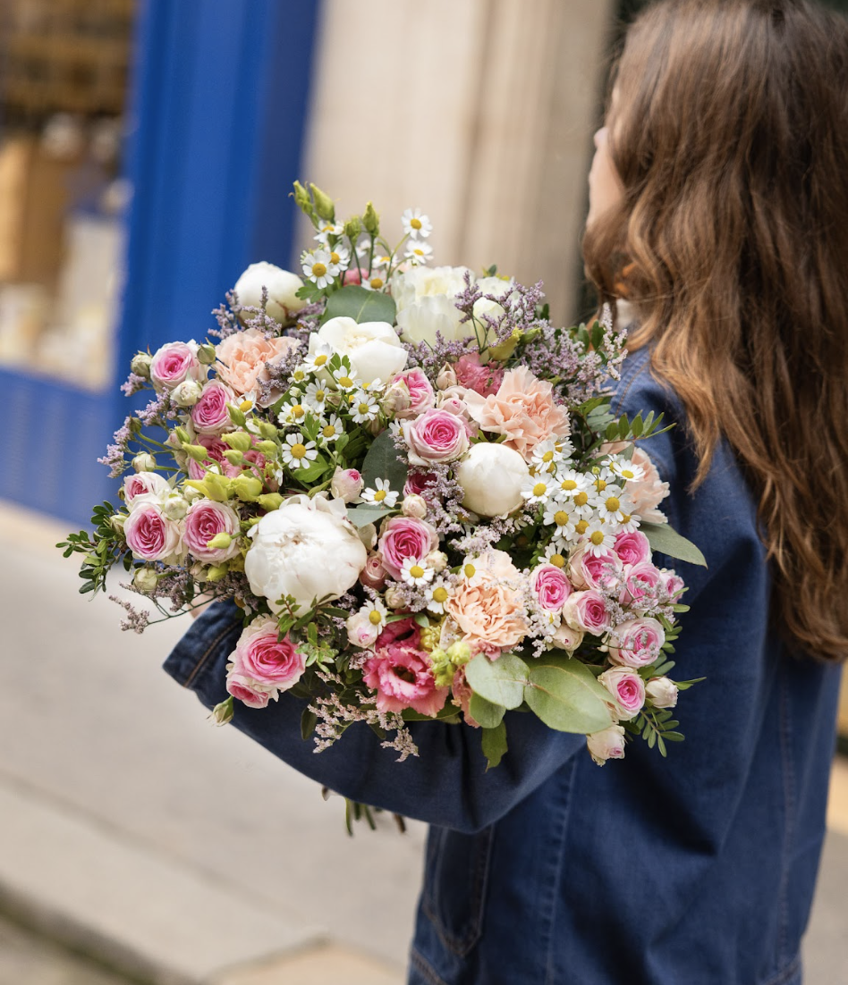 Découvrez ce somptueux bouquet en collaboration avec le Chocolat Alain Ducasse, sublimé dans un camaïeu de rose délicat. Pour une touche de jardinage pérenne, une pivoine blanche en pot est également incluse, offrant une floraison annuelle pour célébrer chaque année les Mamans. Avec une sélection de 9 fleurs variées, telles que des roses, des pivoines blanches, du limonium, etc., ce bouquet offre une diversité florale remarquable. Pour compléter ce geste attentionné, une boîte de pépites de chocolat noir et lait, fourrées d’un praliné noisette à la fleur de sel, vient enrichir cette expérience sensorielle unique.