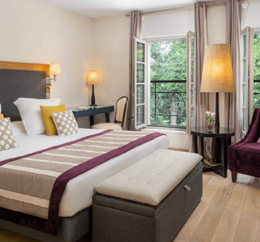 Le Castel Maintenon propose différentes catégories de chambres, adaptées aux besoins de chaque client. Les suites familiales sont parfaites pour les séjours avec enfants, offrant des espaces séparés pour garantir intimité et confort. Les suites juniors, avec leur salon intégré, sont idéales pour les couples cherchant une escapade romantique.