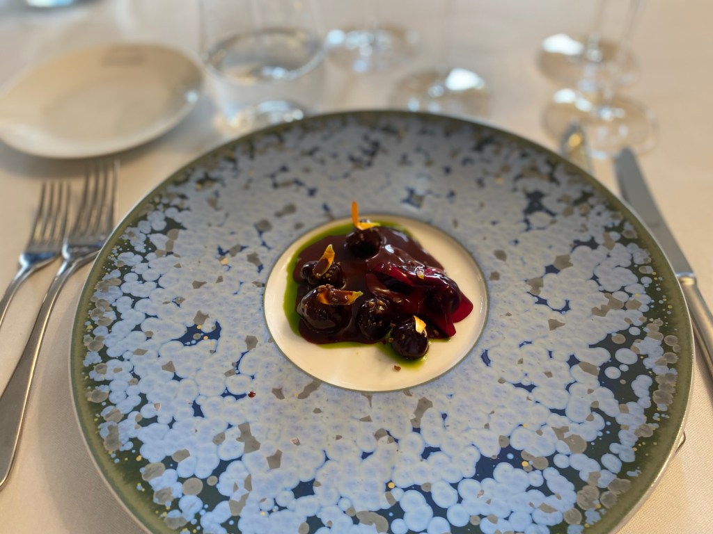 Le plat, lui, flirte avec l’amertume du cacao, créant un dialogue entre tension et rondeur. L’ensemble surprend par son harmonie, prouvant que le champagne rosé peut dépasser le simple rôle de vin de dessert.