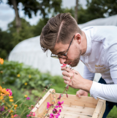 Porté par des convictions écologiques et un lien fort avec son terroir, Mathieu affirme une cuisine personnelle, contemporaine, engagée et créative. Il est habité par une vision précise de l’expérience qu’il souhaite offrir au client : mettre la technique culinaire et les produits locaux au service du goût pour offrir un réel voyage sensoriel à travers un parfait jeu d’équilibre des saveurs et textures de chaque plat.