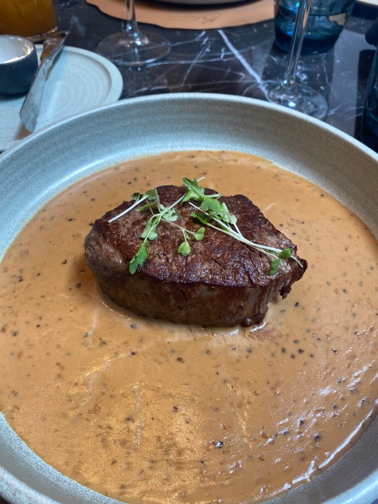 Le plat du jour ? Un chateau filet de bœuf, parfaitement saisi, sauce au poivre Sarawak et frites maison dorées comme il faut. Le genre de plat classique qu’on pense connaître, mais qu’on redécouvre quand il est bien cuisiné. Bonne viande, bonne cuisson, rien à redire. Un plat sincère, presque rassurant.